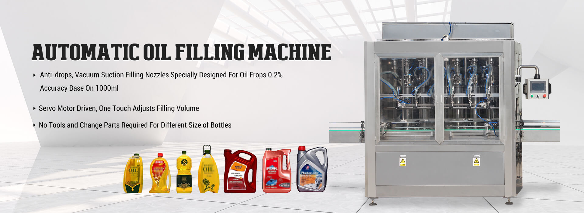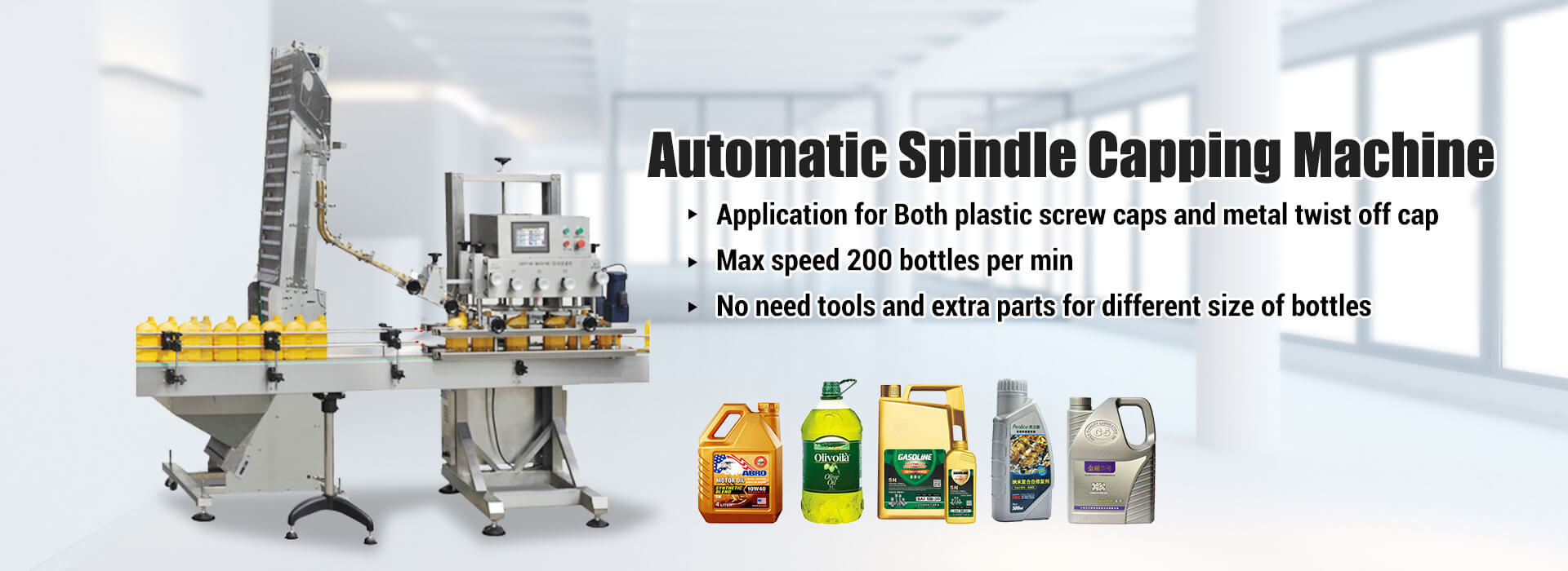 زموږ اصلي محصولاتو کې د ډک ډکولو لاین لپاره د اتوماتیک ډکولو ماشین ، کیپینګ ماشین ، لیبل کولو ماشین او نور شامل دي. زموږ محصولات په پراخه کچه د درملو ، خواړو ، ورځني کیمیکلز ، کاسمیټیک صنعتونو او نور کې کارول کیږي.